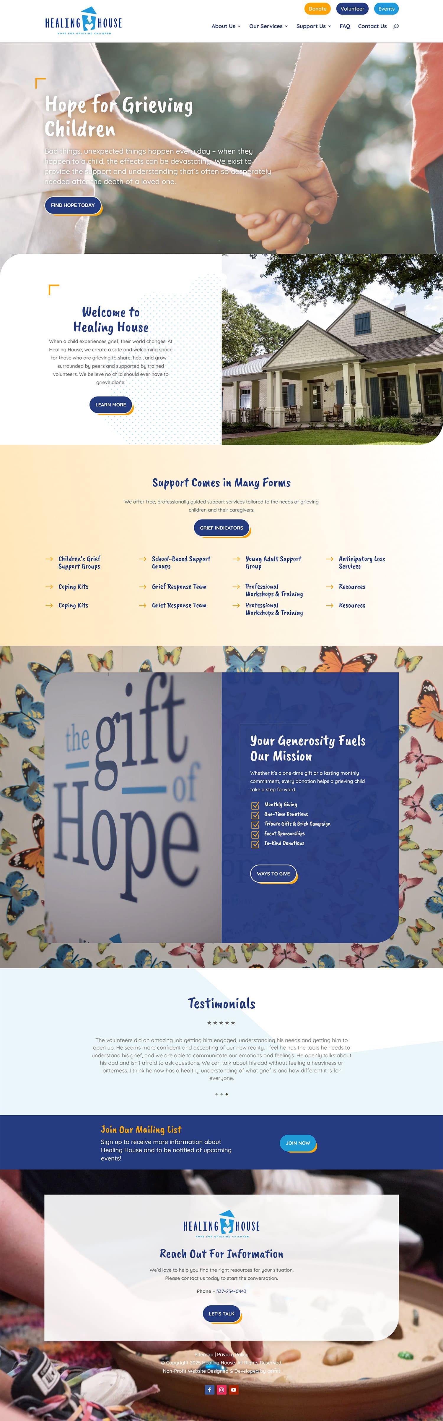 Healing House is a compassionate nonprofit dedicated to supporting children and families in the Acadiana region as they navigate grief and loss. Their work centers on creating a safe, nurturing environment where young people can express emotions, build resilience, and find connection through structured programs, peer-based support groups, and community events. Guided by warmth, empathy, and a deep commitment to healing, Healing House empowers families with the tools and understanding they need to move forward with hope.